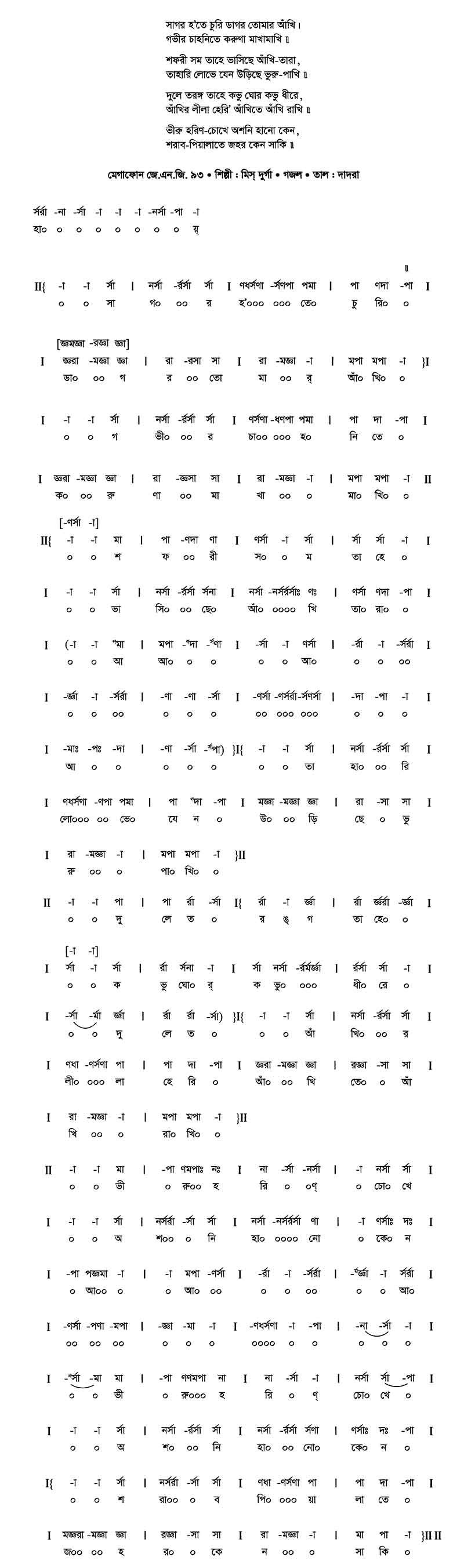 সাগর হ’তে চুরি ডাগর তার আঁখি