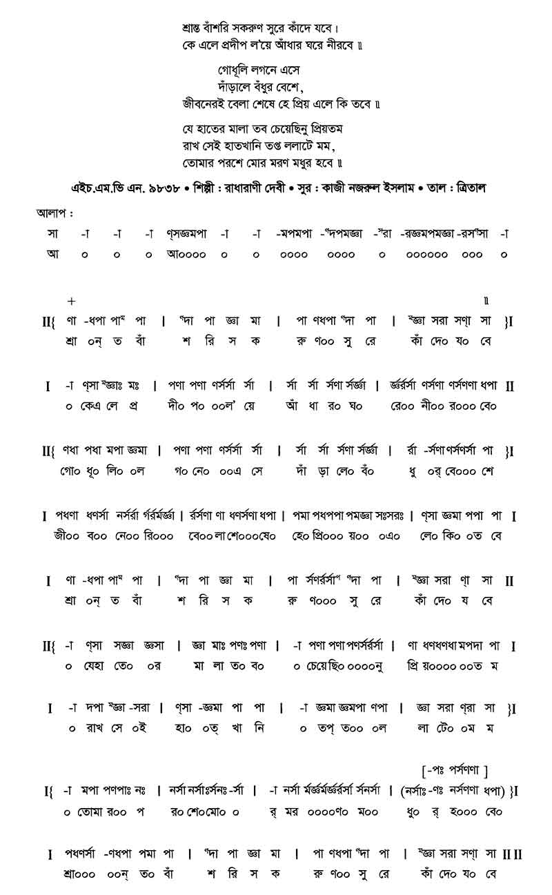 শ্রান্ত বাঁশরি সকরুণ সুরে