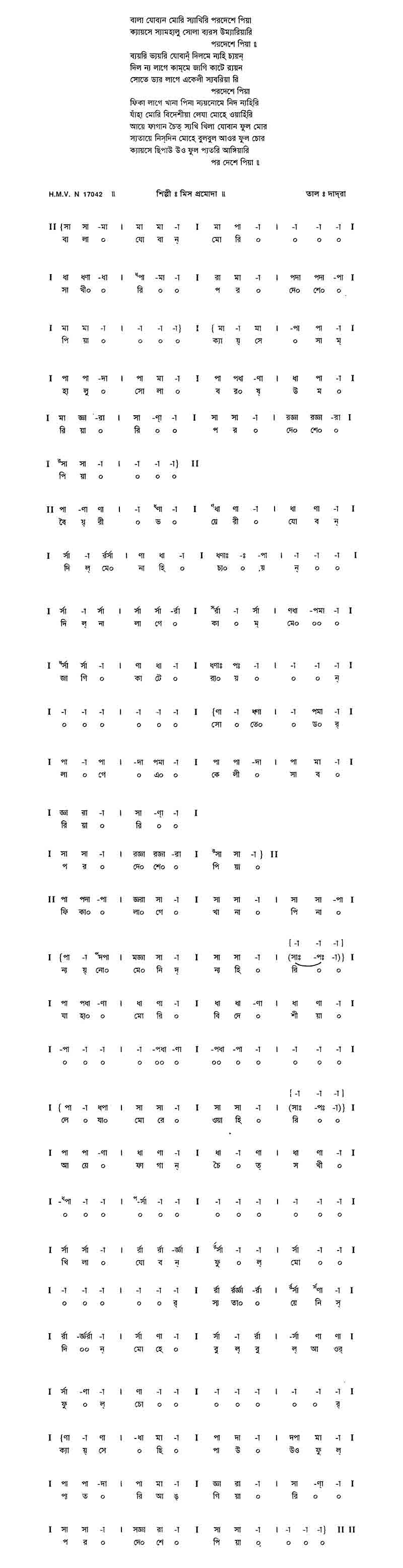 বালা যোবান মোরি স্যখিরি পরদেশে পিয়া।