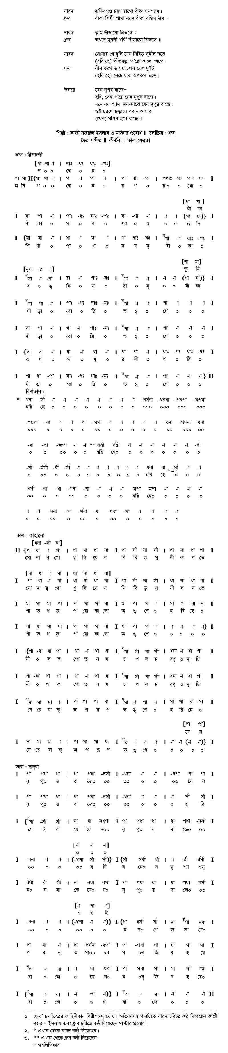 ধ্রুব	:	নীল কপোত সম চরণ দুটি