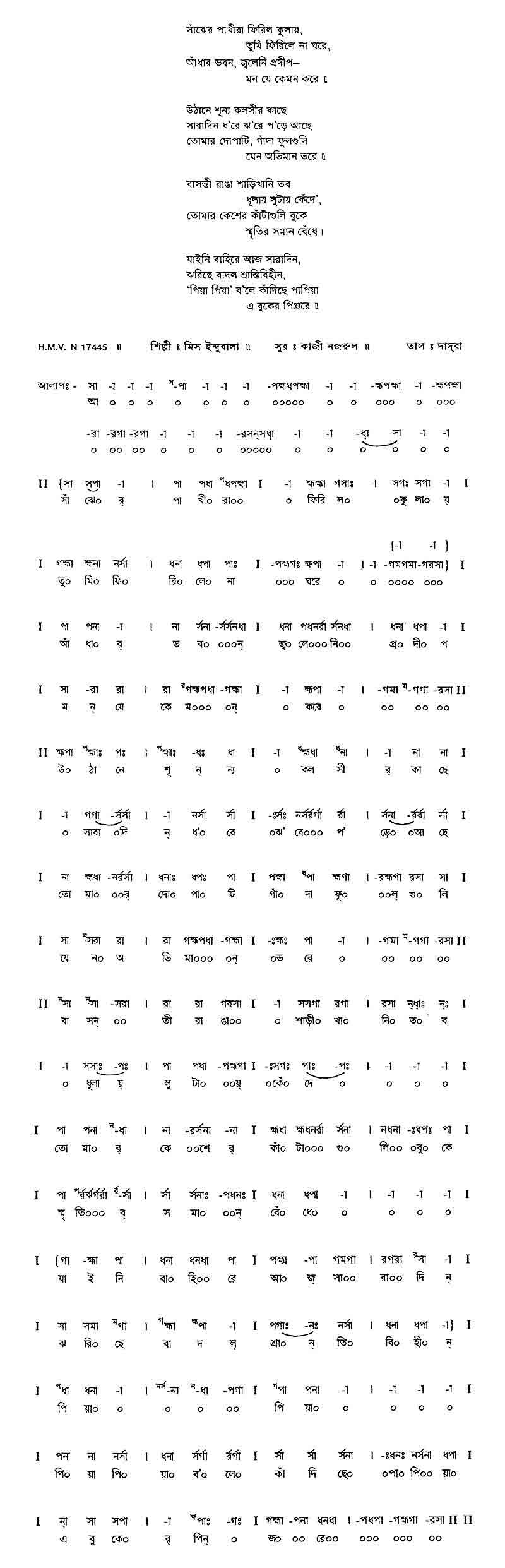 ১. ‘অন্তরা’ অংশ গ্রামোফোন রেকর্ডে গাওয়া হয়নি।