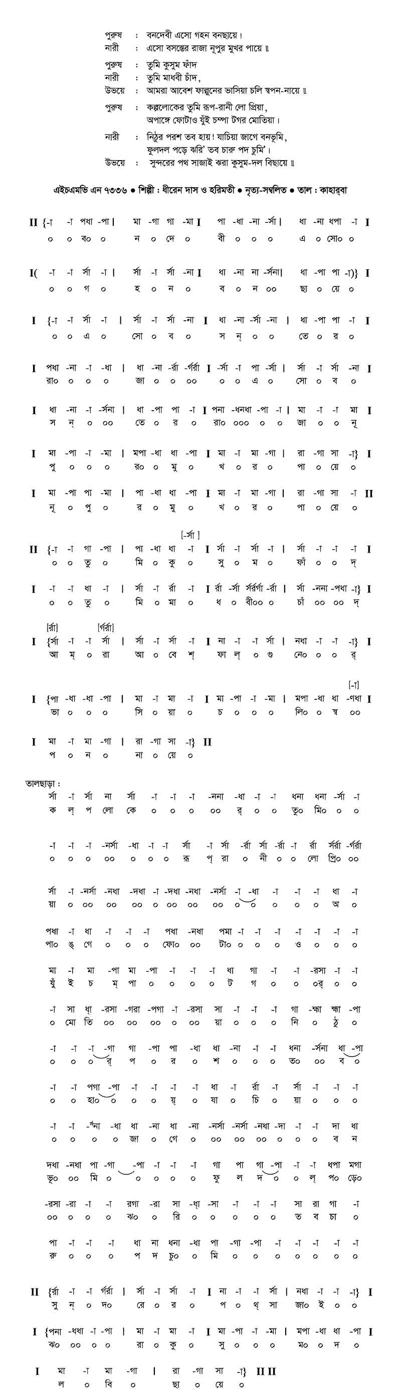 স্ত্রী	: এসো বসন্তের রাজা নূপুর-মুখর পায়ে।।