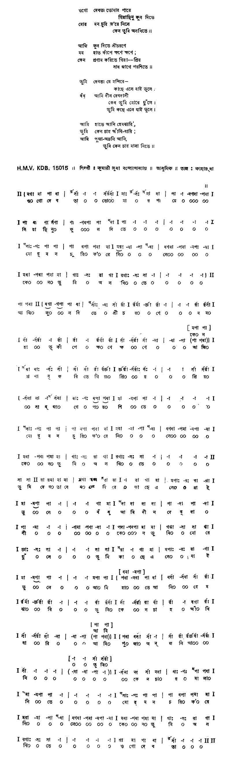বঁধু	আমি দীন দেবদাসী কেন তুমি মোরে ছুঁলে।