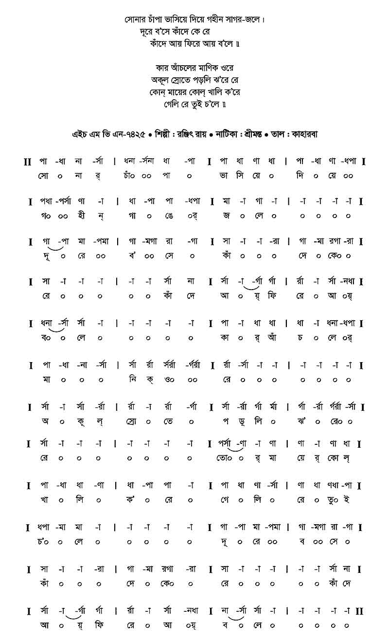 সোনার চাঁপা ভাসিয়ে দিয়ে গহীন সাগর-জলে