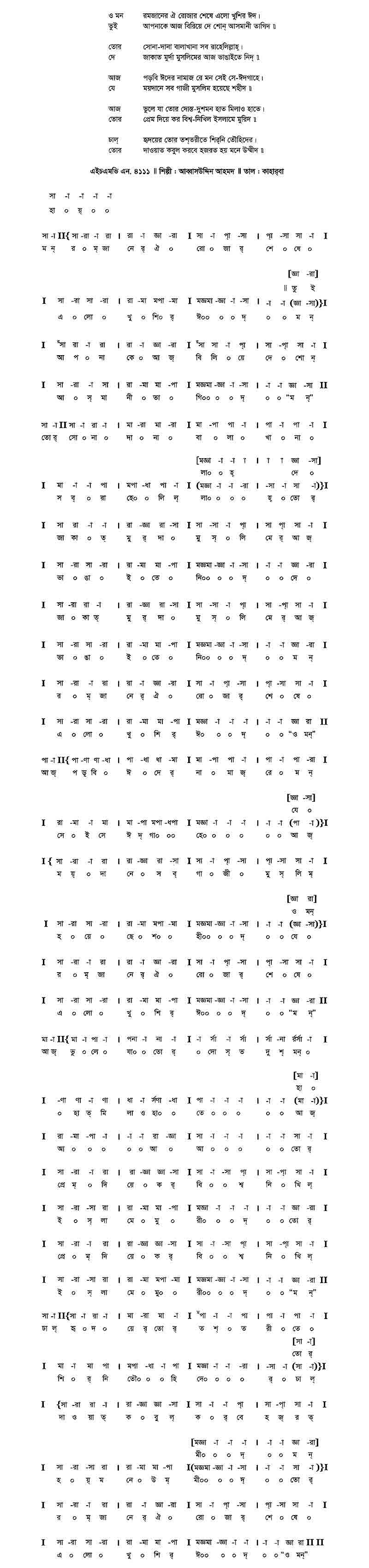 আগের মত আমের ডালে বোল ধরেছে বউ। তুমিই শুধু বদ্লে গেছ, আগের মানুষ নও।। তেম্নি আজো তোমার নামে উথলে মধু গোলাপ-জামে, উঠ্ল পু’রে জামরুলে রস, মহুল ফুলে মউ।। ডালিম-দানায় রং ধরেছে, ডাঁশায় নোনা আতা, তোমার পথে বিছায় ছায়া ছাতিম তরুর ছাতা। তেম্নি আজো নিমের ফুলে ঝিম্ হয়ে ঐ ভ্রমর দুলে, হিজল-শাখায় কাঁদছে পাখি বউ গো কথা কও।।