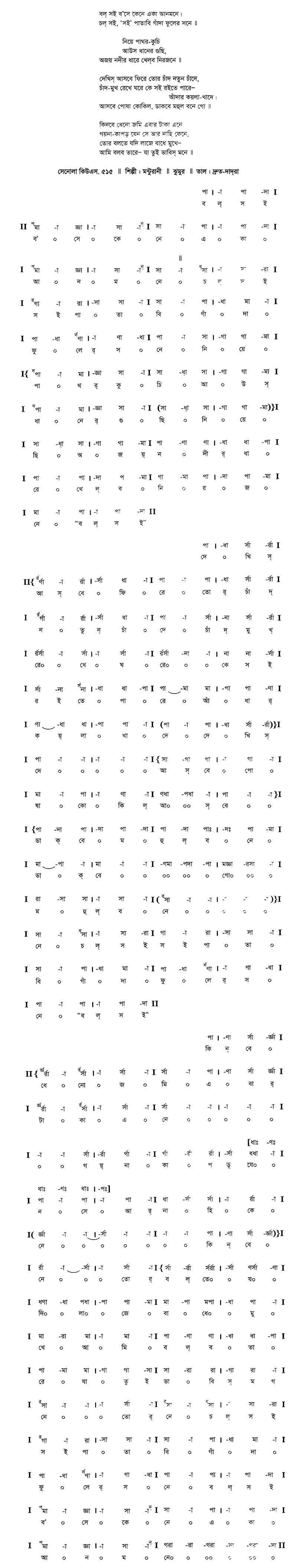 বল্ সই বসে কেনে একা আনমনে