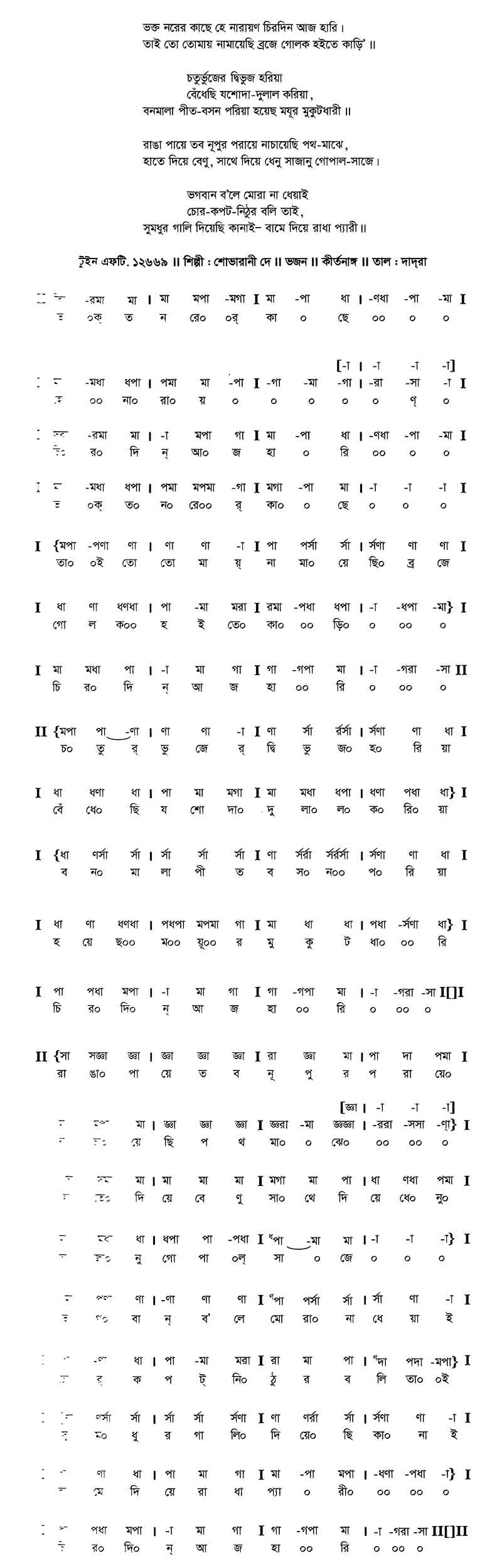 প্রভু তোমাতে যে করে প্রাণ নিবেদন ভয় নাহি আর তার শত সে বিপদে আপদে তাহার হাত ধরে কর পার॥ তার দুঃখে শোকে ভাবনায় ভয়ে তব নাম রাজে সান্ত্বনা হয়ে পার হয়ে যায় তব নাম লয়ে দুস্তর পারাবার॥ ঝড় ঝঞ্ঝায় প্রাণ শিখা তার শান্ত অচঞ্চল টলমল করে রূপে রসে তার জীবনের শতদল। যেমন পরম র্ভিরতায় শিশু তার মার বক্ষে ঘুমায় তোমারে যে পায় সে জন তেমনি ডরে নাহি সংসার॥