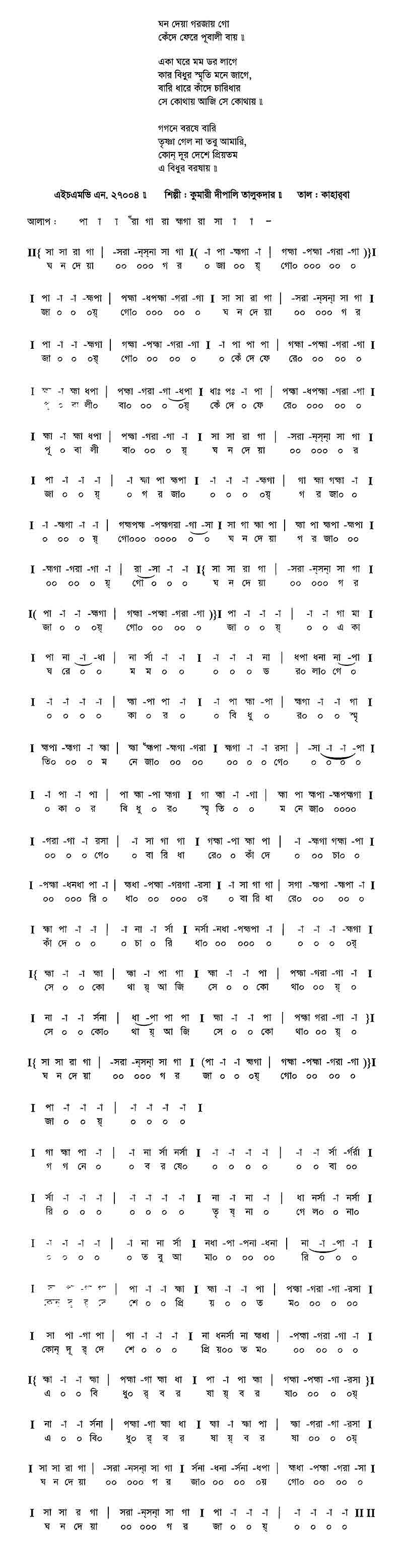 ঘন দেয়া গরজায় গো