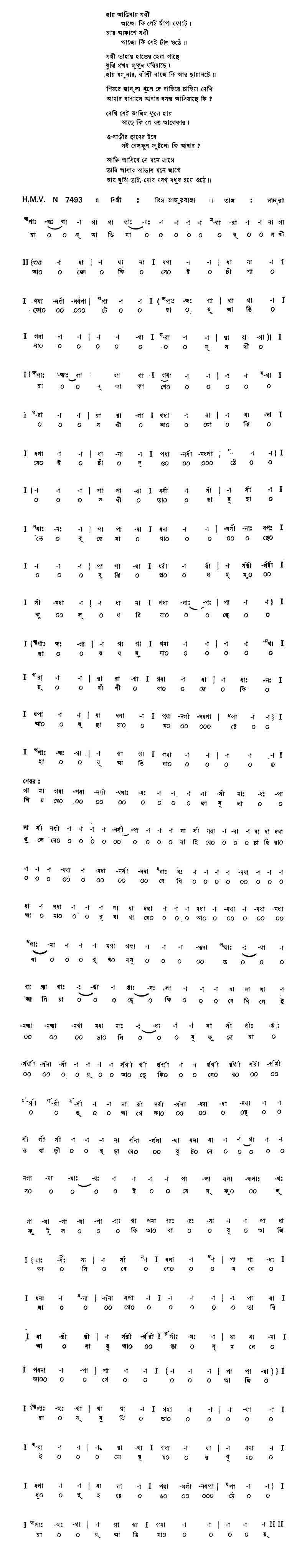 স্ত্রী 	:	ভ্রমর গুঞ্জে মঞ্জুল গীতি, হেরিয়া আমার বঁধূর প্রীতি,