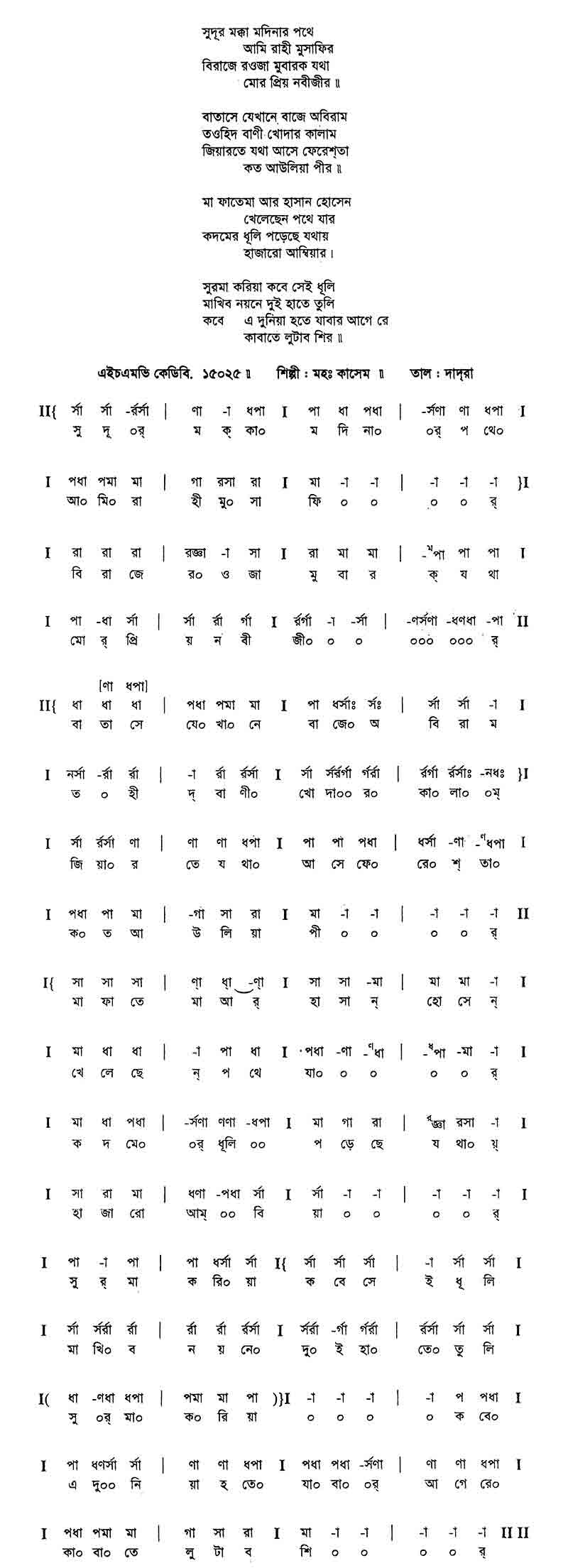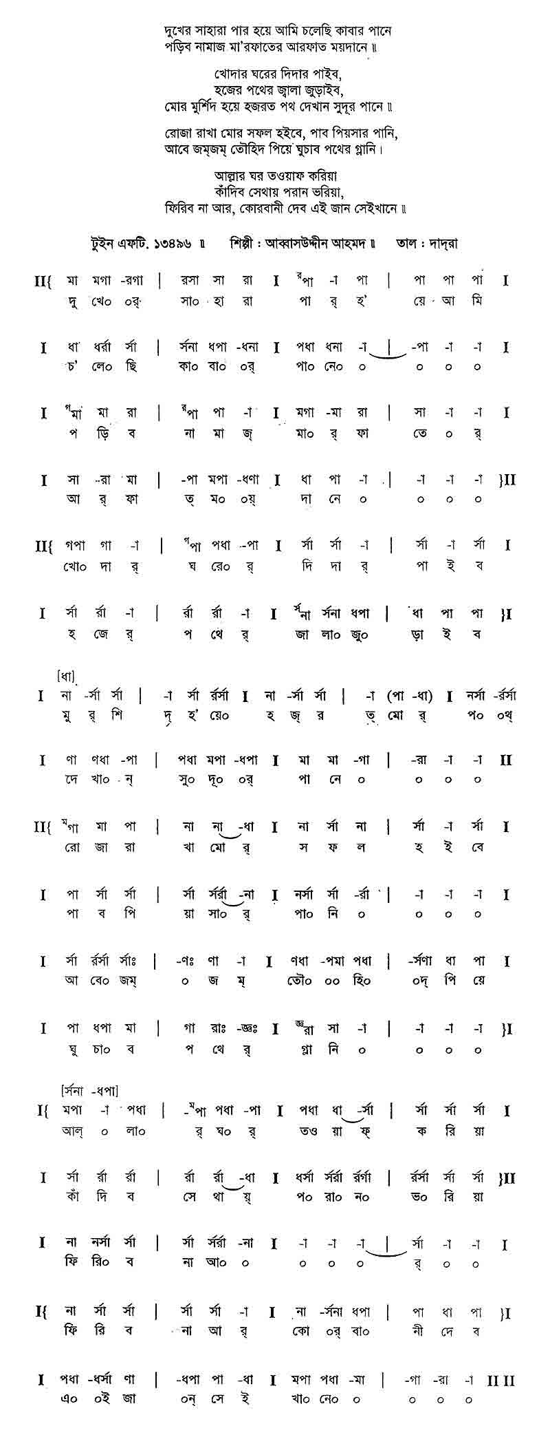 (মোর)	মুর্শিদ হয়ে হজরত পথ দেখান সুদূর পানে।।