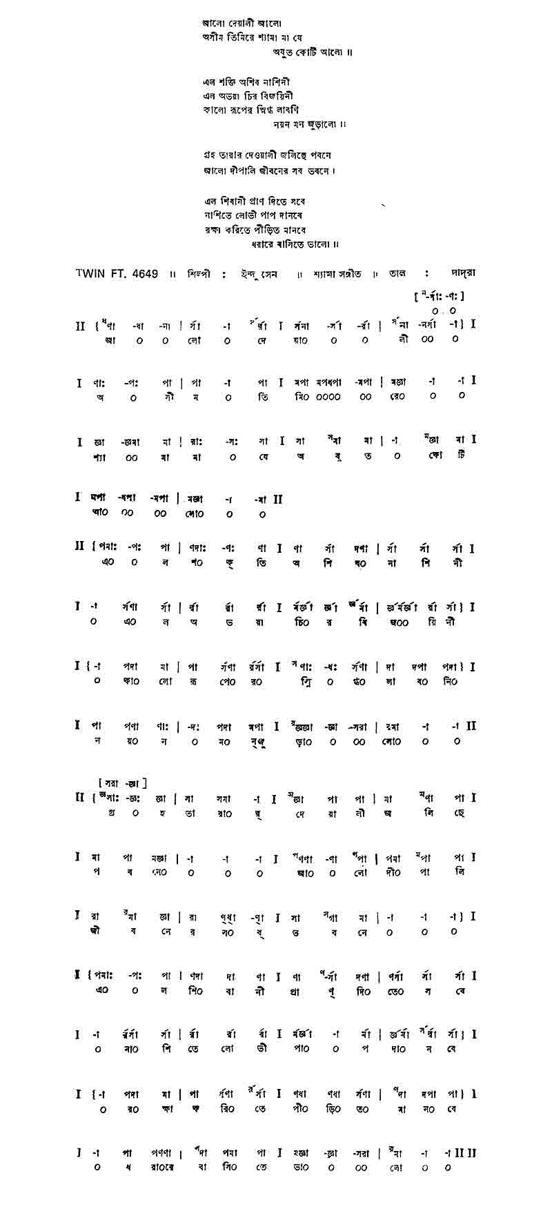অসীম তিমিরে শ‍্যামা মা যে অযুত কোটি আলো।।