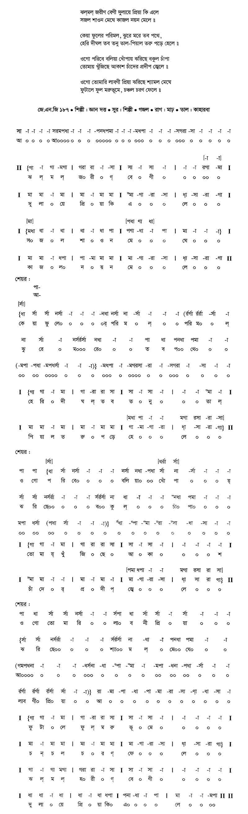 তোমারি লাবনি প্রিয়া ঝরিছে শ্যামল মেঘে,
