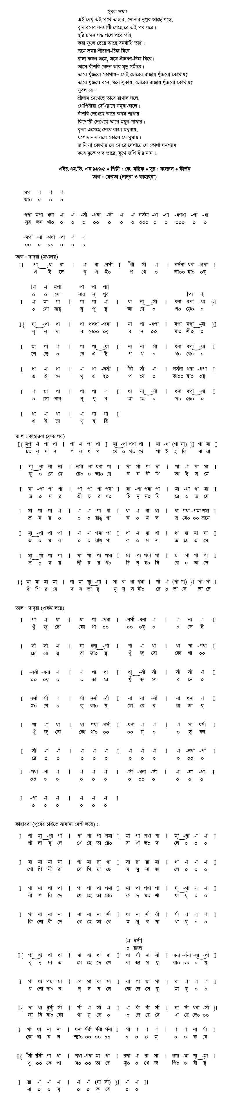 সুবল সখা! এই দেখ্ এই পথে তাহার, সোনার নূপুর আছে পড়ে,