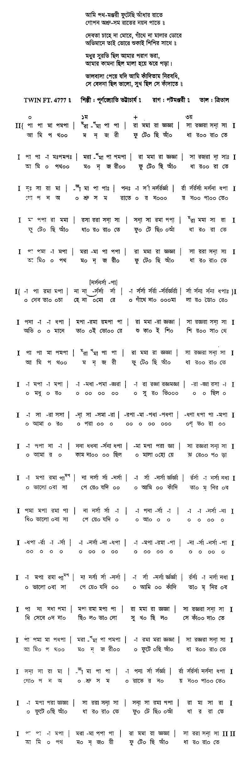 এলো ফুল-দোল ওরে এলো ফুল দোল আনো রঙ-ঝারি। অশোকমঞ্জরি অলকে পরি এসো গোপ-নারী।। ঝরিছে আকাশে রঙের ঝরনা হায় শ্যামা ধরণী হ’ল আবির-বরণা, ত্যজি’ গৃহ-কাজ এসো চল-চরণা — ডাকে গিরিধারী।। পরাগ-আবির হানে বনবালা সুরের পিচ্কারি হানিছে কুহু, রঙিন্ স্বপন রাতের ঘুমে অনুরাগ-রং ঝরে মনে মুহু মুহু। রাঙে গিরি-মল্লিকা রঙিন বর্ণে, রাতের আঁচল ভরে জোছনার স্বর্ণে কুলের কালি সখি দেবে ধুয়ে রাঙা পিচ্কারি।।