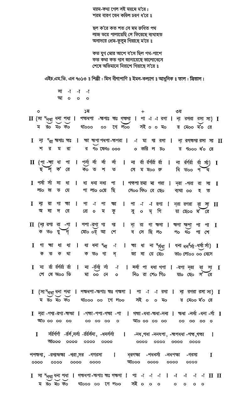 মরম-কথা গেল সই মরমে ম’রে