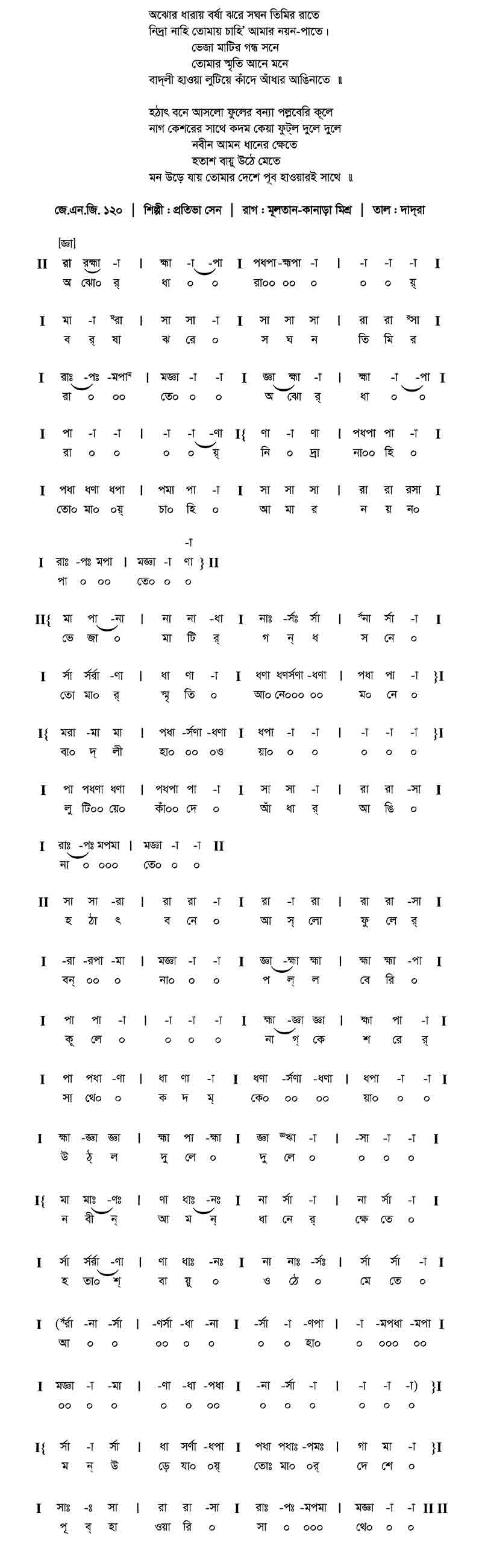 সরগম:	 	ধ প র ধ র গ, গ র গ ধ, গ র গ ধ,