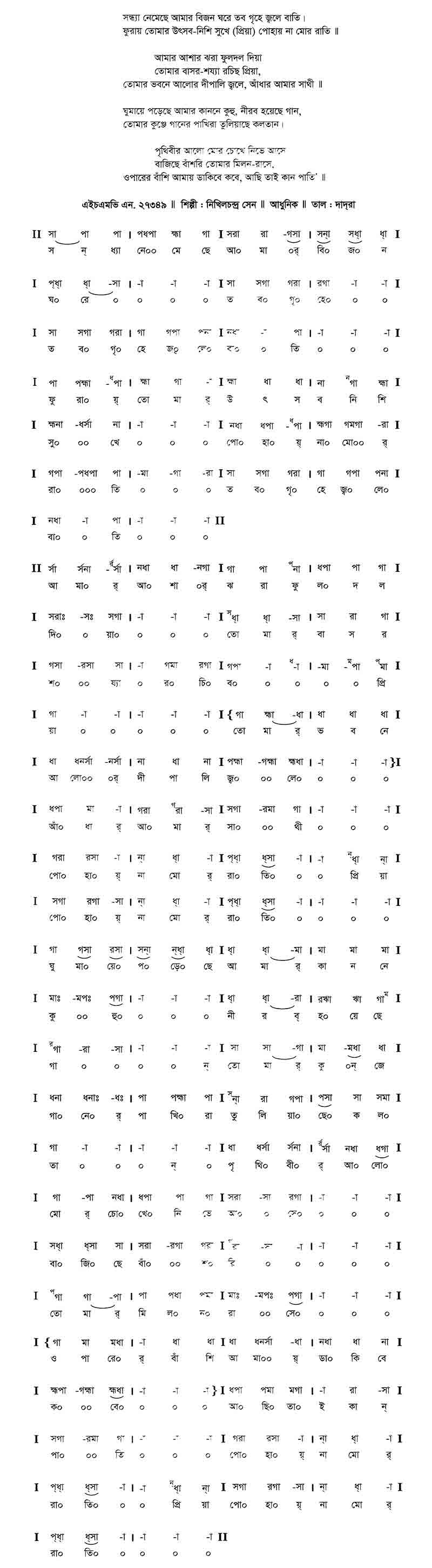 সন্ধ্যা নেমেছে আমার বিজন ঘরে, তব গৃহে জ্বলে বাতি।