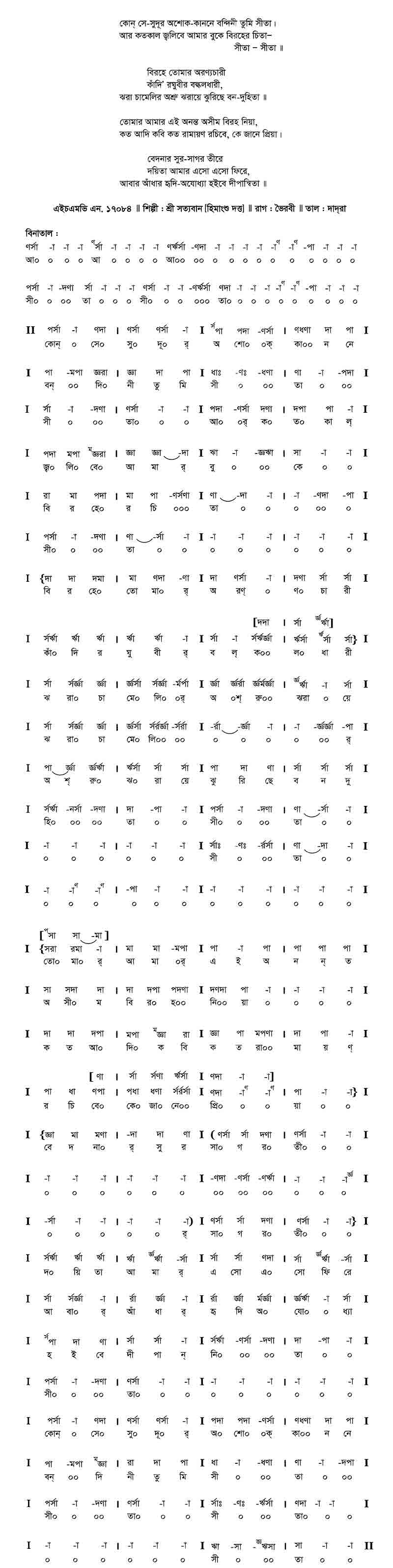 কোন্‌ সে-সুদূর অশোক-কাননে বন্দিনী তুমি সীতা।