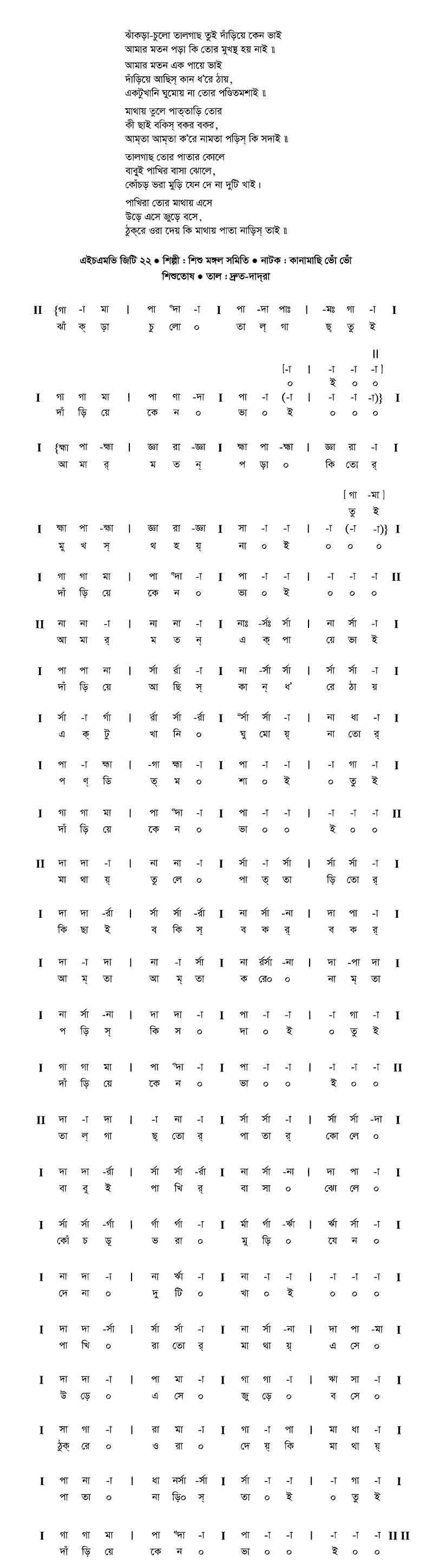 চলে কুস্মি শাড়ি পরি' বসন্তের পরী নবীনা কিশোরী হেসে হেসে। হেলিয়া দুলিয়া সমীরণে ভেসে ভেসে।। রঙ্গীলা রঙ্গে নৃত্য-ভঙ্গে চলিছে চপলা এলোকেশে। পাপিয়া 'পিয়া পিয়া' ডাকে শাখে তাহারে ভালোবেসে।। মদির চপল বায়, অঞ্চল উড়ে যায়, সে বৈকালি সুর যেন চৈতী বেলাশেষে।। মনে সে নেশা লাগায়, বনে সে আঁখির ইঙ্গিতে ফুল ফোটায়। বেনুবনে তারি বাঁশি বাজে, তারি নাম গুঞ্জরে ভ্রমর তার ঝির্ঝির্ মিরমির বাজে মঞ্জির নাচের আবেশে তার ঝুমুর ঝুমুর নূপুর-ধ্বনি হাওয়াতে মেশে।।