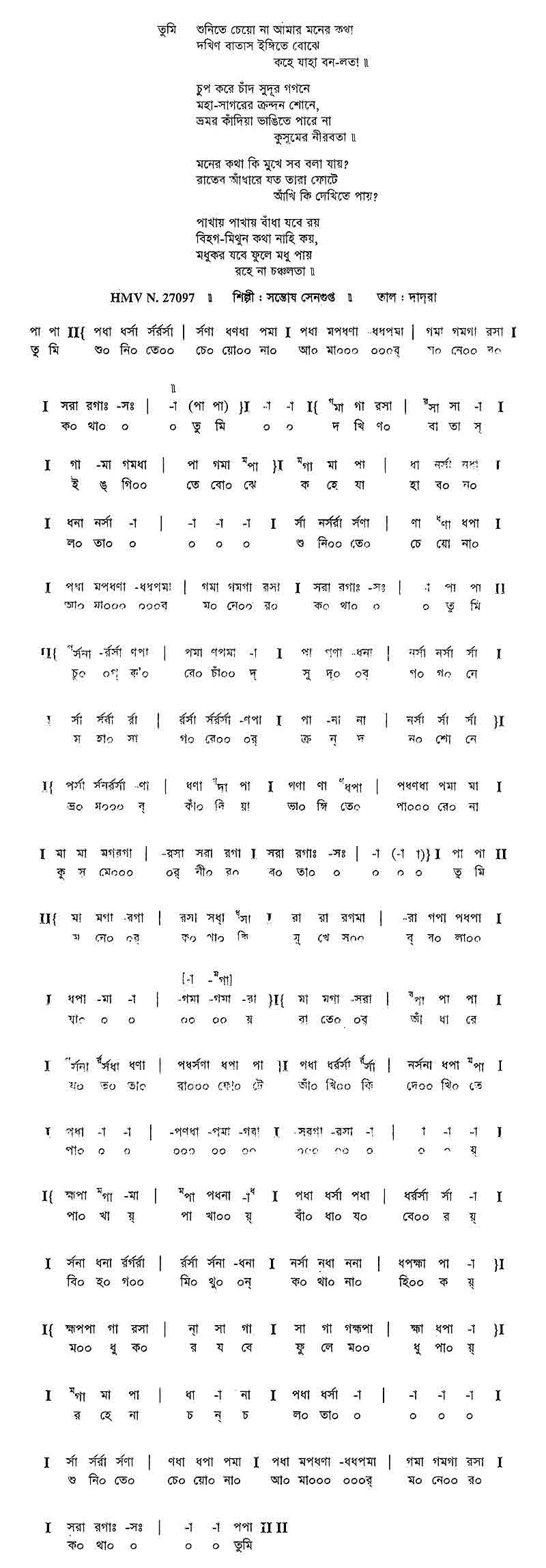 ১. চিনি ও-নিঠুরে চিনি পায়ে দ’লে মন জিনি’