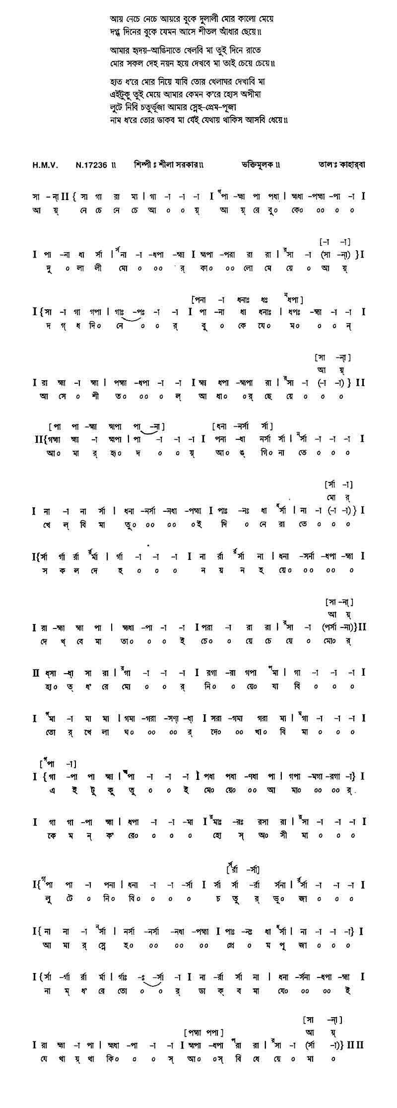 মোর সকল দেহ নয়ন হয়ে দেখবে মা তাই চেয়ে চেয়ে।।