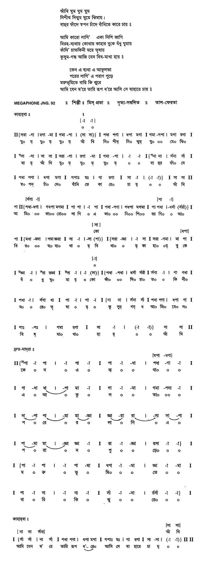 আঁখি ঘুম-ঘুম-ঘুম নিশীথ নিঝুম ঘুমে ঝিমায়