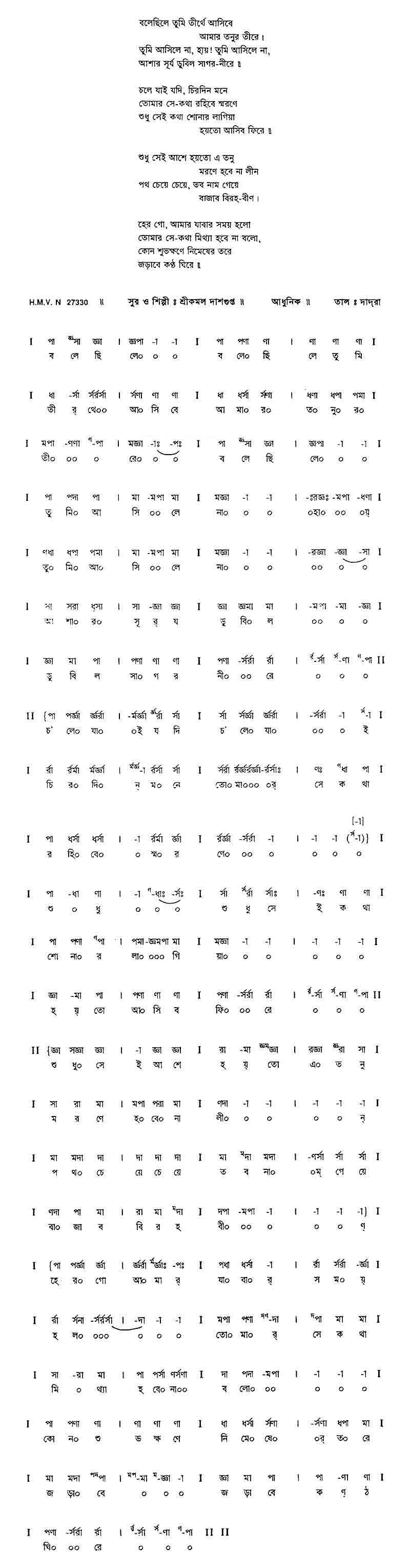 তুমি আসিলে না, (হায়!) আশার সূর্য ডুবিল সাগর-নীরে।।