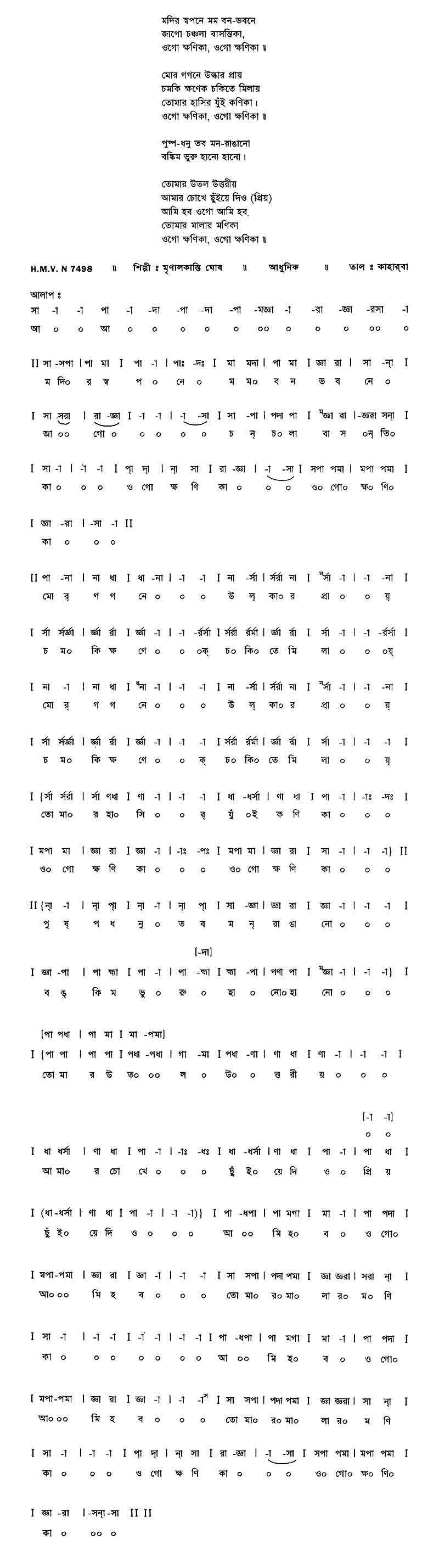 ওর মন যে জানি লো, [ও চন্দ্রা’র বুকে কাঁদে ‘রাধা, রাধা’ ব’লে]