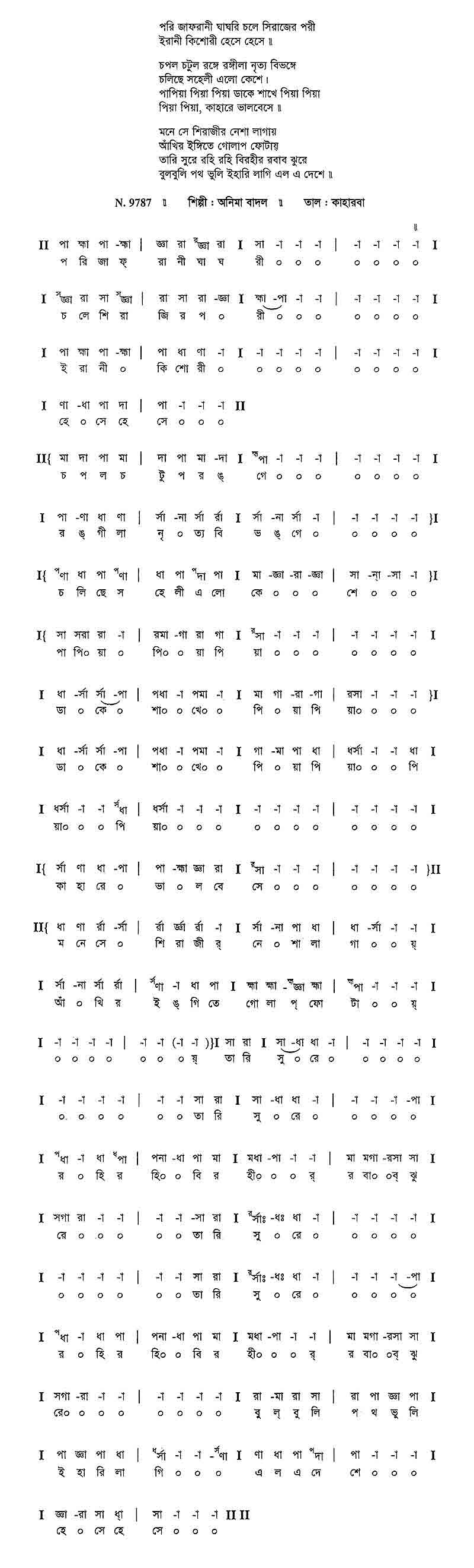 বর্ণচোরা ঠাকুর এলো রসের নদীয়ায় তোরা দেখবি যদি আয় তারে কেউ বলে শ্রীমতি রাধা কেউ বলে সে শ্যামরায়।। কেউ বলে তার সোনার অঙ্গে রাধা-কৃষ্ণ খেলেন রঙ্গে; ওগো কেউ বলে তায় গৌর-হরি কেউ অবতার বলে তায়।। তার ভক্ত তারে ষড়ভুজ শ্রী নারায়ণ বলে, কেউ দেখেছে শ্রীবাসের ঘরে কেউ বা নীলাচলে। দুই হাতে তার ধনুর্বাণ ঠিক যেন শ্রীরাম, দুই হাতে তার মোহন বাঁশি যেন রাধা-শ্যাম, আর দু'হাতে দণ্ড ঝুলি নবীন সন্ন্যাসীরই প্রায়।।