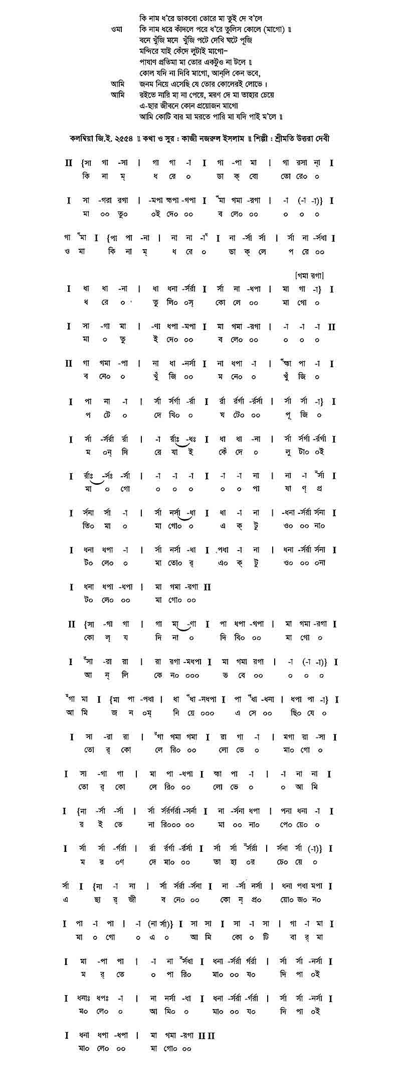 ওমা	কি নাম ধ'রে কাঁদলে পরে ধ'রে তুলিস কোলে (মাগো)।।