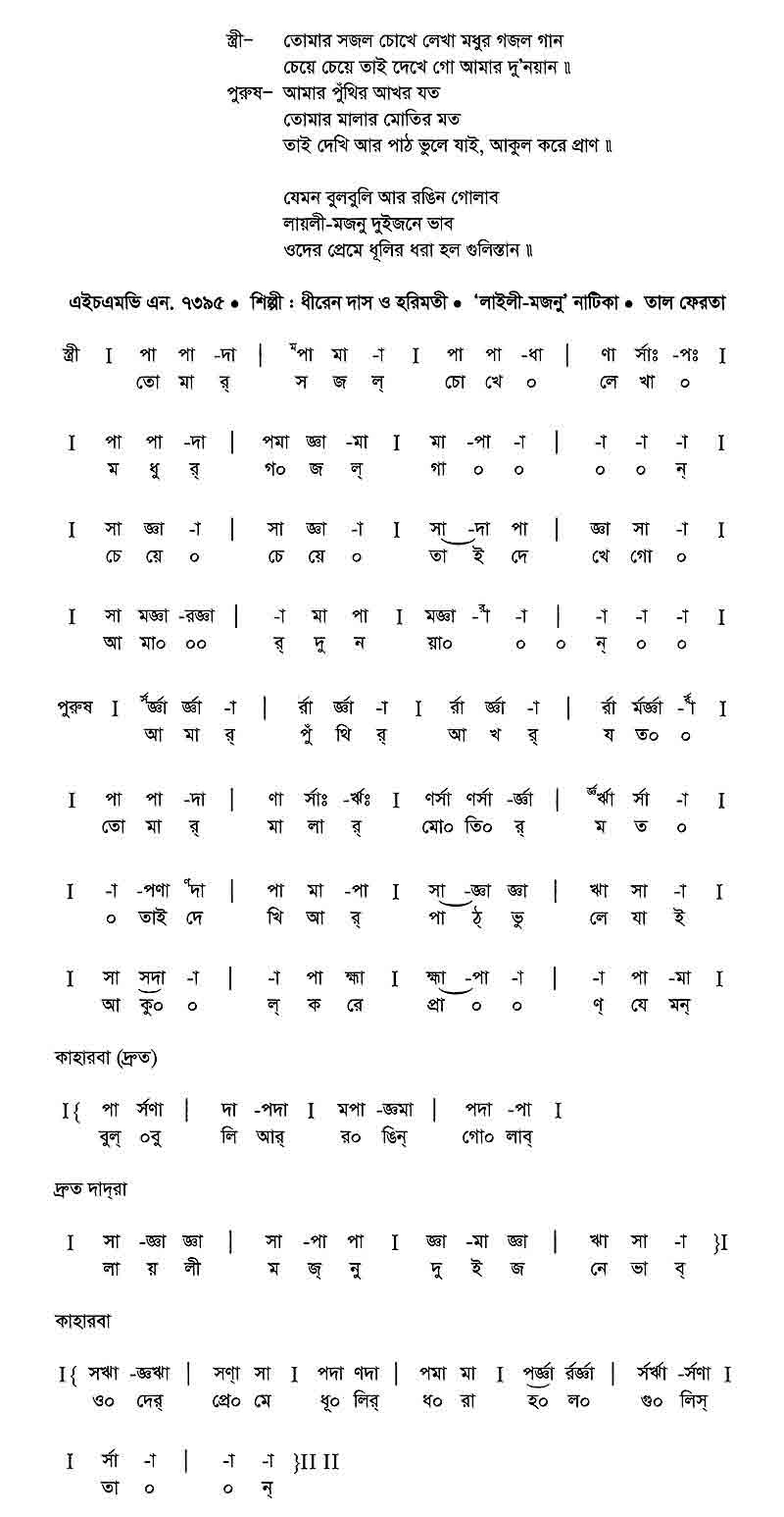 নীপ-শাখে বাঁধো ঝুলনিয়া, কাজল-নয়না শ্যামলিয়া॥ মেঘ-মৃদঙ্গ তালে শিখী নাচে ডালে-ডালে। মল্লার গান গাহিছে পবন পূরবিয়া॥ কেতকী কেশরে কুন্তল করো সুরভি, পরো কদম মেখলা কটি-তটে রূপ-গরবী। নব-যৌবন জল-তরঙ্গে, পায়ে পাঁয়জোর বাজুক রঙ্গে কাজরি ছন্দে নেচে চল করতালি দিয়া॥