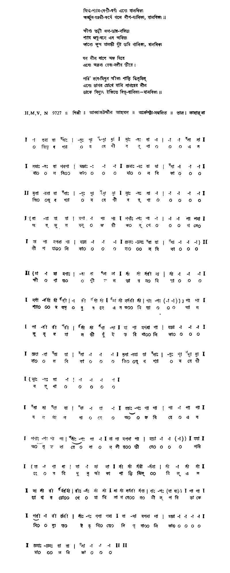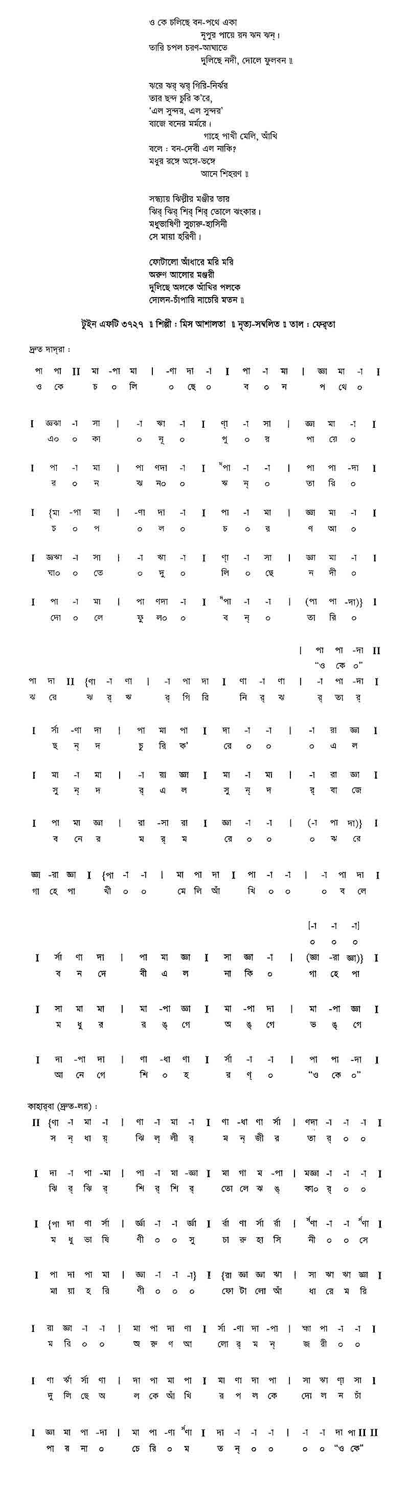 ভোলো প্রিয় ভোলো ভোলো আমার স্মৃতি। তোরণ-দ্বারে বাজে করুণ বিদায়-গীতি।। তুমি ভুল ক’রে এসেছিলে ভুলে ভালবেসেছিলে, ভুলের খেলা ভুলের মেলা তাই প্রিয় ভেঙে দিলে। ঝরা ফুলে হের ঝুরে কানন-বীথি।। তব সুখ-দিনে তব হাসির মাঝে অশ্রু মম রবির দাহে শিশির সম শুকাইবে প্রিয়তম, হাসিবে তব নিশীথে নব চাঁদের তিথি।। ফোটে ফুল যায় ঝ’রে গহন বনে অনাদরে গোপনে মোর প্রেম-কুসুম তেমনি গেল গো মরে, আমার তরে কাঁটার ব্যথা কাঁদুক নিতি।।
