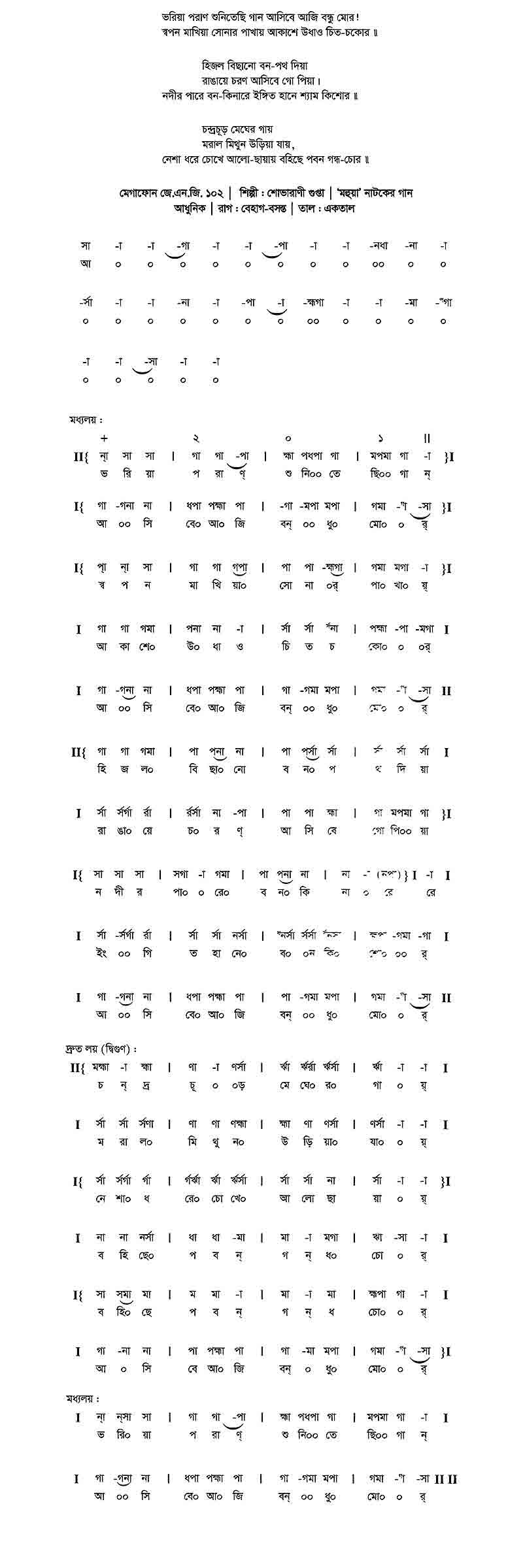 ভরিয়া পরান শুনিতেছি গান আসিবে আজি বন্ধু মোর!
