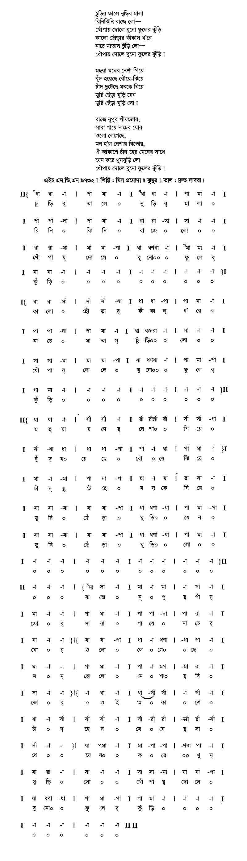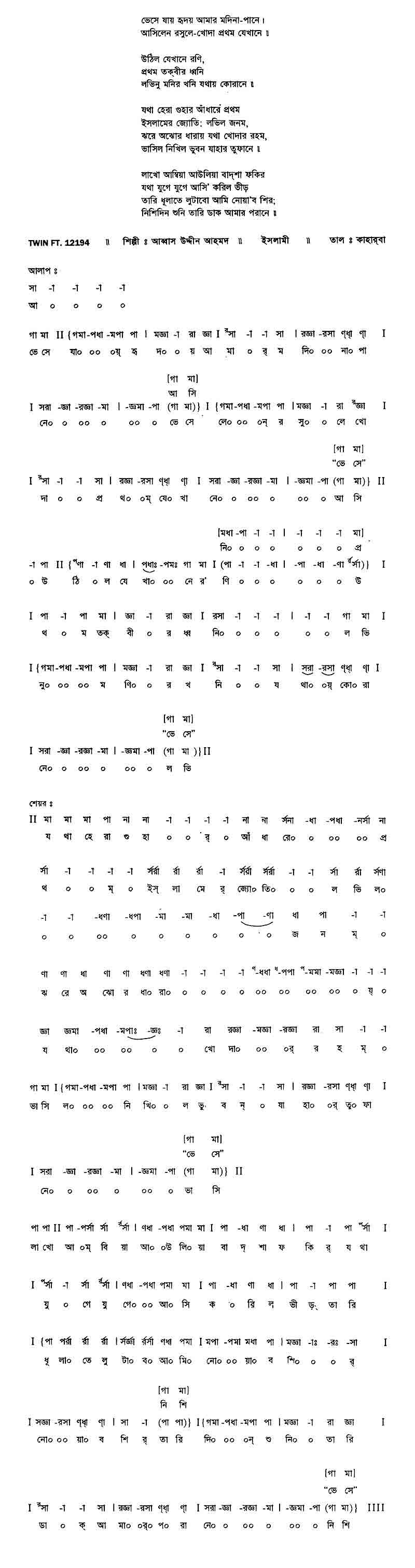 অরুণ-রাঙা গোলাপ-কলি কে নিবি সহেলি আয়। গালে যার গোলাপী আভা এ ফুল-কলি তারে চায়।। ডালির ফুল যে শুকায়ে যায় কোথায় লায়লী, শিরী কোথায় কোথায় প্রেমিক বিরহী মজনু এ ফুল দেব কাহার পায়।। পূর্ণ চাঁদের এমন তিথি ফুল-বিলাসী কই অতিথি বুলবুলি বিনে এ গুল্ যে অভিমানে মুরছায়।।