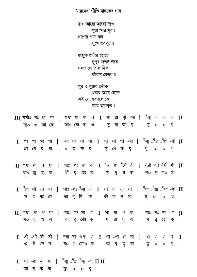 দাও আরো আরো দাও সুরা আর সুর। প্রাণের পাত্র কর সুখে ভরপুর।। বাজুক অধীর হ’য়ে নূপুর জলদ লয়ে, সমতালে তাল দিক কাঁকন-কেয়ূর।। সুর ও সুরার ঝোঁক ধরায় অমর হোক, এই সে-স্বর্গলোকে আয় তৃষাতুর।।