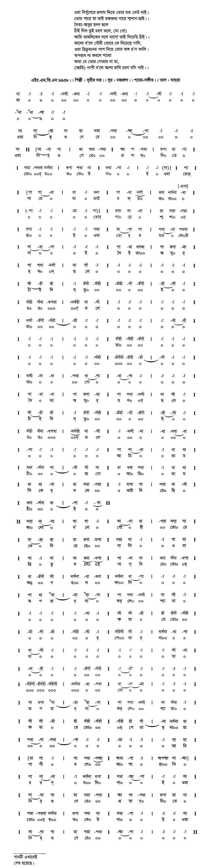 নমঃ নমঃ নমো বাঙলাদেশ মম চির মনোরম চির মধুর বুকে নিরবধি বহে শত নদী চরণে জলধির বাজে নূপুর।। গ্রীষ্মে নাচে বামা কালবোশেখি ঝড়ে সহসা বরষাতে কাঁদিয়া ভেঙ্গে পড়ে শরতে হেসে চলে শেফালিকা-তলে গাহিয়া আগমনী গীতি বিধুর।। হরিত অঞ্চল হেমন্তে দুলায়ে ফেরে সে মাঠে মাঠে শিশির ভেজা পায়ে শীতের অলস বেলা পাতা ঝরারি খেলা ফাগুনে পরে সাজ ফুল-বধূর।। এই দেশের মাটি জল ও ফুলে ফলে যে রস যে সুধা নাহি ভূমণ্ডলে এই মায়েরি বুকে হেসে খেলে সুখে ঘুমাবো এই বুকে স্বপ্নাতুর।।