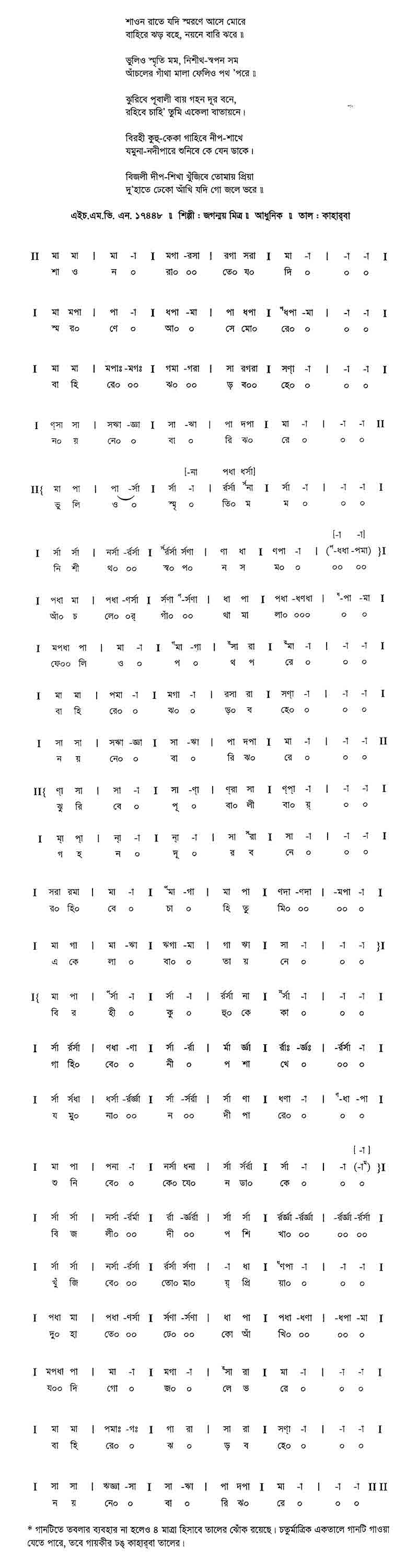 শাওন–রাতে যদি স্মরণে আসে মোরে