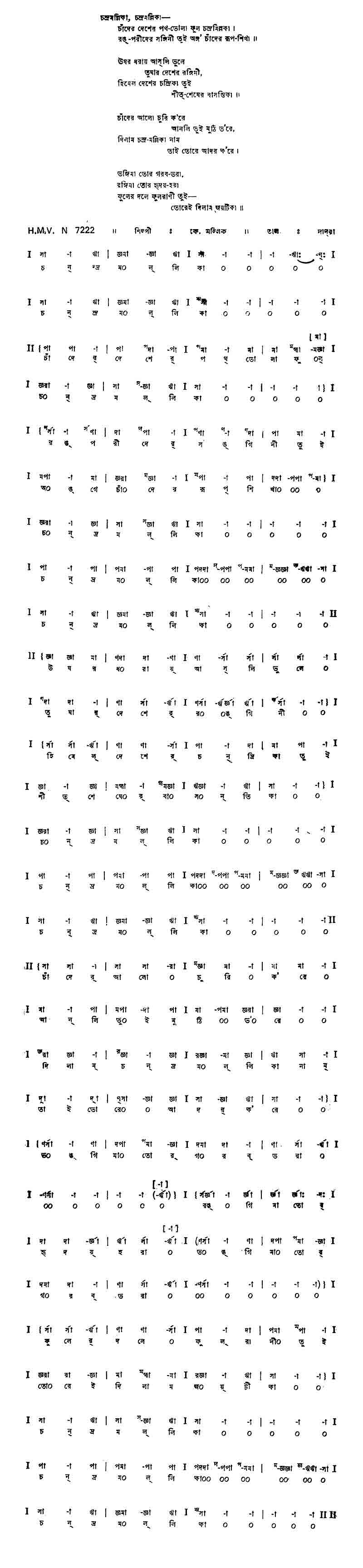 চন্দ্রমল্লিকা, চন্দ্রমল্লিকা — চাঁদের দেশের পথ-ভোলা ফুল চন্দ্রমল্লিকা। রঙ্-পরীদের সঙ্গিনী তুই অঙ্গ’ চাঁদের রূপ-শিখা।। ঊষর ধরায় আস্লি ভুলে তুষার দেশের রঙ্গনী’ হিমেল দেশের চন্দ্রিকা তুই শীত-শেষের বাসন্তিকা।। চাঁদের আলো চুরি ক’রে আনলি তুই মুঠি ভ’রে, দিলাম চন্দ্র-মল্লিকা নাম তাই তোরে আদর ক’রে। ভঙ্গিমা তোর গরব-ভরা রঙ্গিমা তোর হৃদয়-হরা, ফুলের দলে ফুলরানী তুই — তোরেই দিলাম জয়টিকা।।