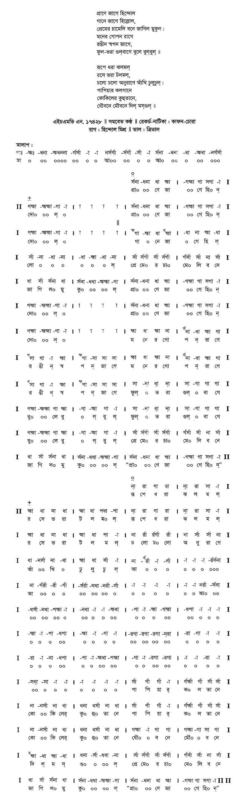 প্রাণে জাগে হিন্দোল গানে জাগে হিল্লোল,