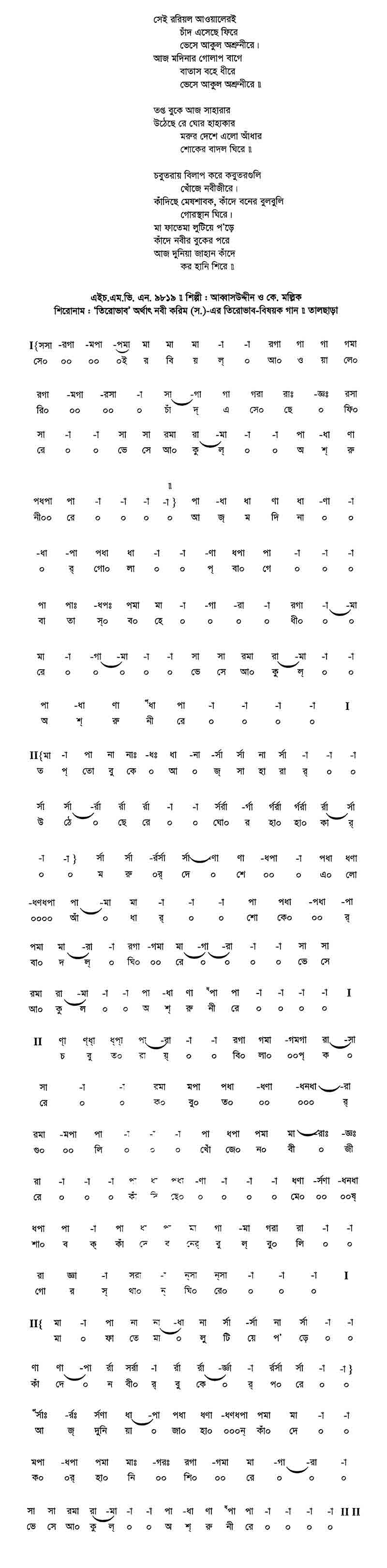 কোথায় তুই খুঁজিস ভগবান্, সে যে রে তোরই মাঝে রয়, চেয়ে দেখ সে তোরই মাঝে রয়। সাজিয়া যোগী ও দরবেশ খুঁজিস্ যায় পাহাড় জঙ্গলময়।। আঁখি খোল্ ইচ্ছা-অন্ধের দল নিজেরে দেখ্ রে আয়নাতে, দেখিবি তোরই এই দেহে নিরাকার তাঁহার পরিচয়।। ভাবিস্ তুই ক্ষুদ্র কলেবর, ইহাতেই অসীম নীলাম্বর, এ দেহের আধারে গোপন রহে সে বিশ্ব-চরাচর। প্রাণে তোর প্রাণের ঠাকুর বেহেশ্তে স্বর্গে কোথাও নয়।। এই তোর মন্দির-মসজিদ এই তোর কাশী-বৃন্দাবন, আপনার পানে ফিরে চল কোথা তুই তীর্থে যাবি, মন! এই তোর মক্কা-মদিনা, জগন্নাথ-ক্ষেত্র এই হৃদয়।।