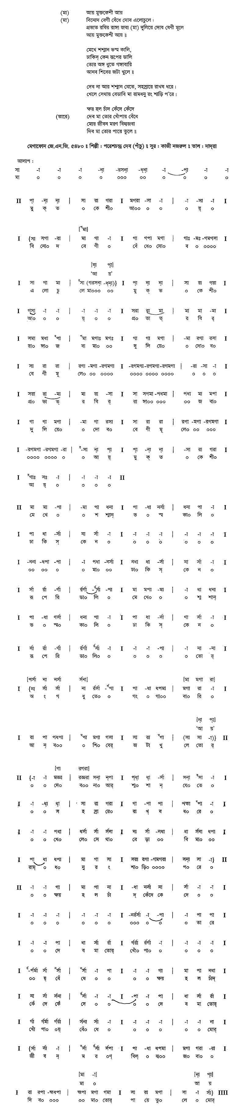 (তারে)	দেব মা তোর খোঁপায় বেঁধে