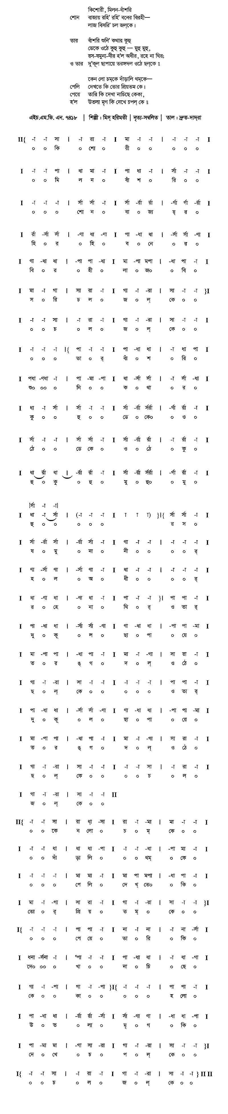 শোন	বাজায় রহি’ রহি’ বনের বিরহী —