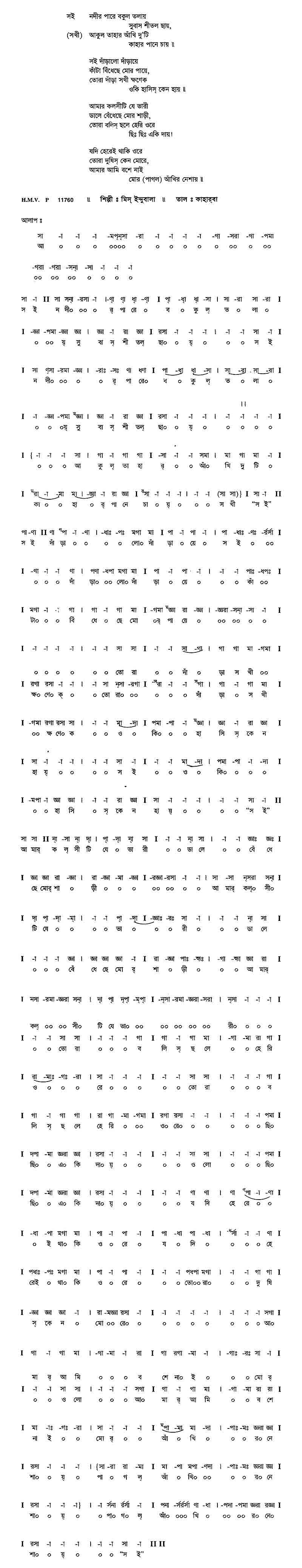 সই যা না লো দাঁড়ায়ে, কাঁটা বিঁধেছে মোর পায়ে