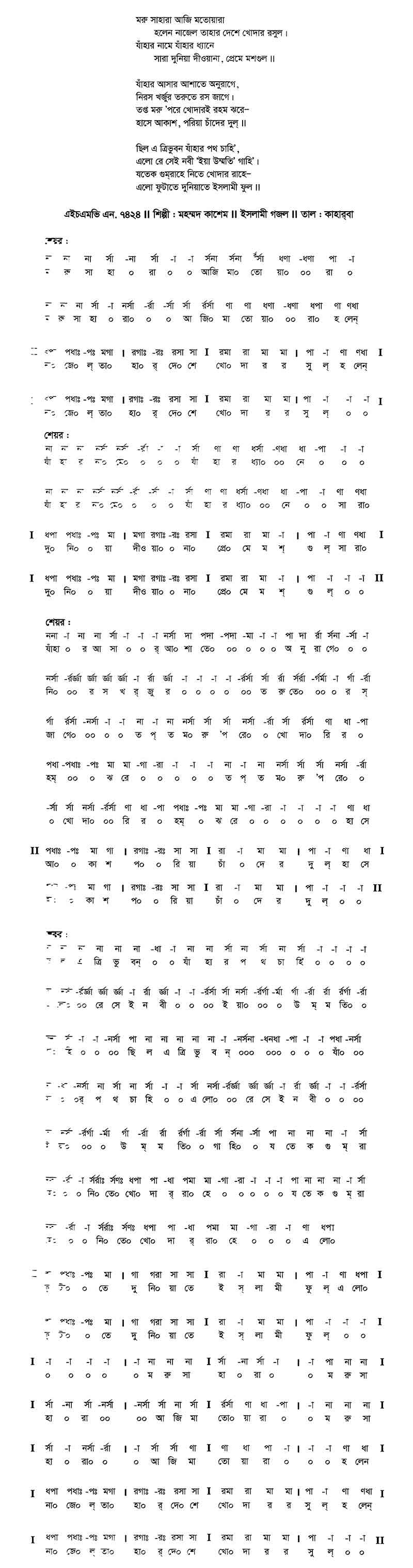 মরু সাহারা আজি মাতায়োরা — হলেন নাজেল তাহার দেশে খোদার রসুল।