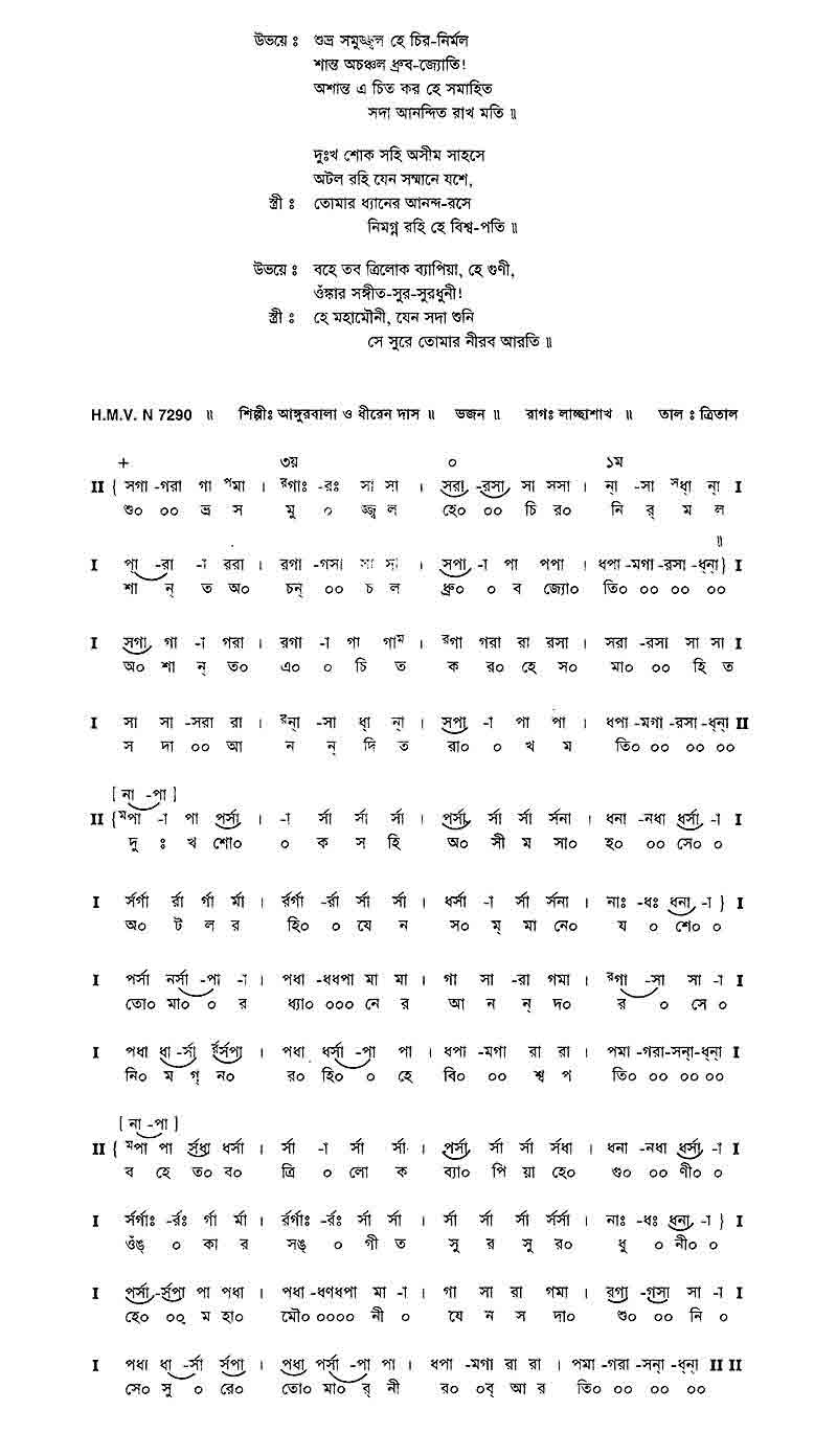 শুভ্র সমুজ্জ্বল, হে চির–নির্মল শান্ত অচঞ্চল ধ্রুব–জ্যোতি