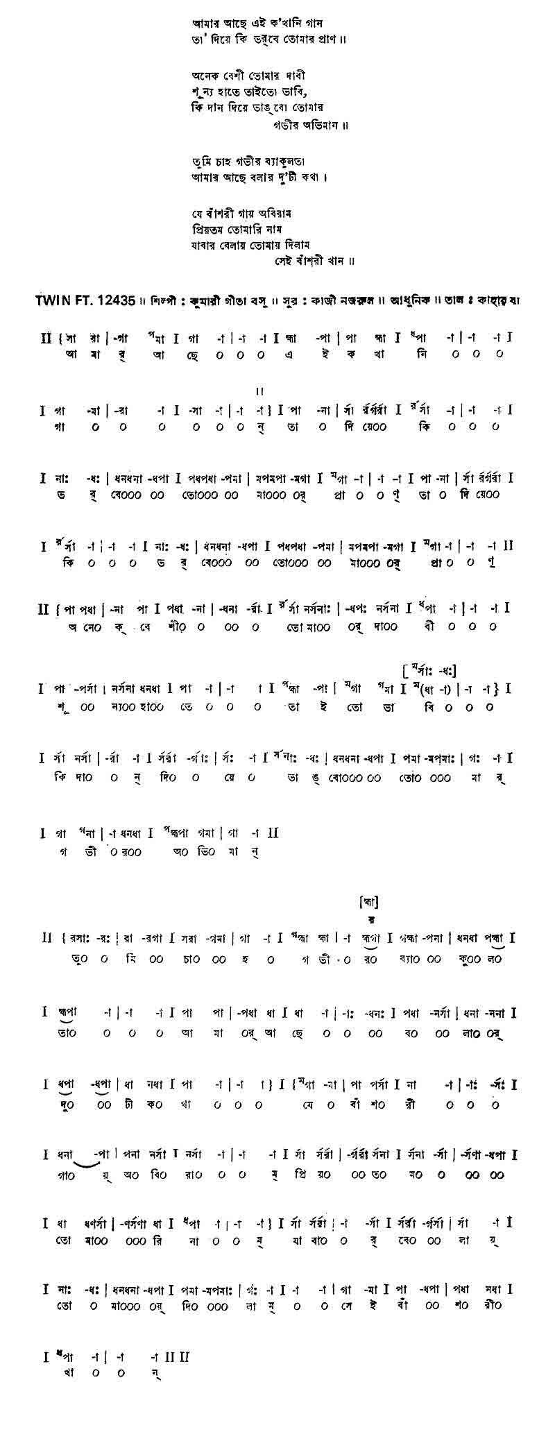 আজিকে তোমায় ও আমায়	বেদনার বাসর জাগরণ।