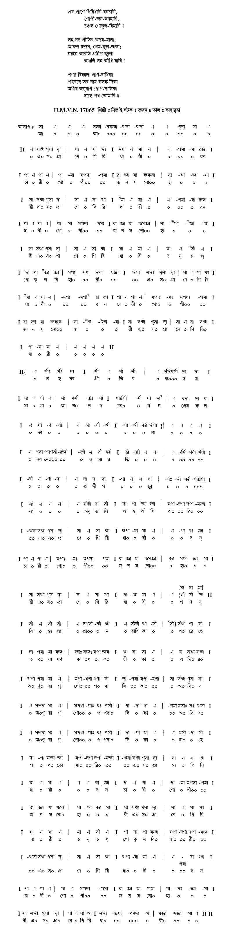 এসো প্রাণে গিরিধারী বন-চারী