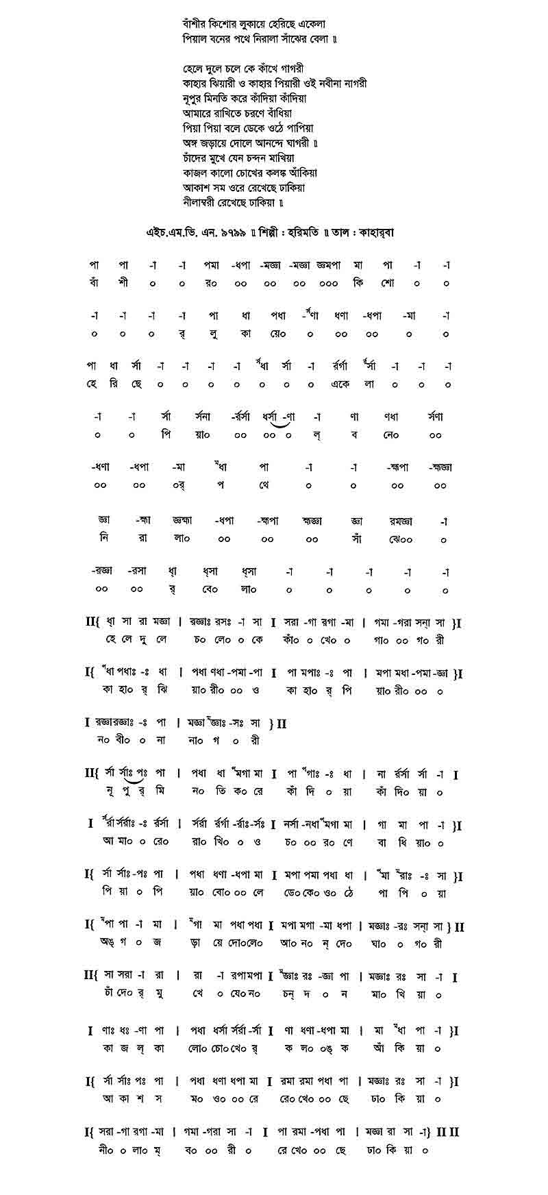 কাহার ঝিয়ারি, ও কাহার পিয়ারি ওই নবীনা নাগরি।।