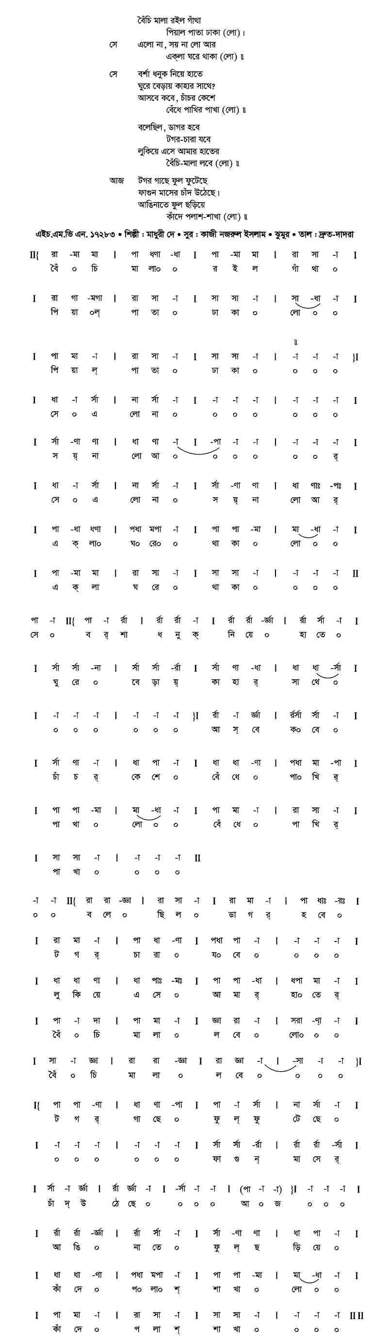 বৈঁচি মালা রইল গাঁথা পিয়াল পাতা ঢাকা (লো)।