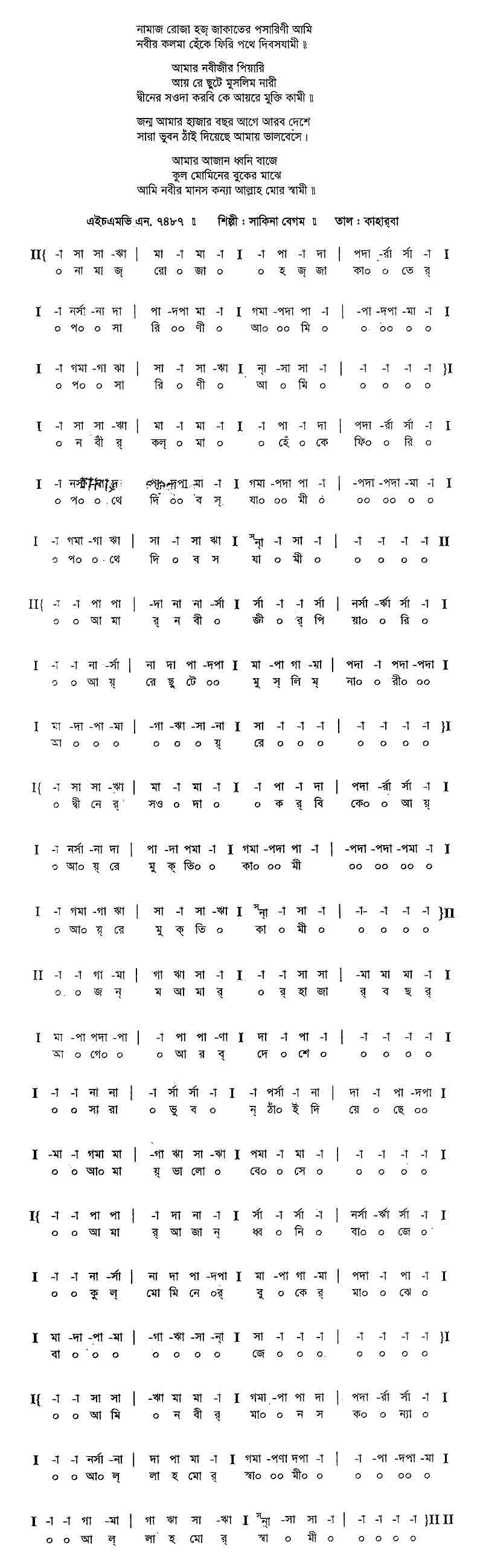 নবীর কল্‌মা হেঁকে ফিরি পথে দিবস-যামী।।